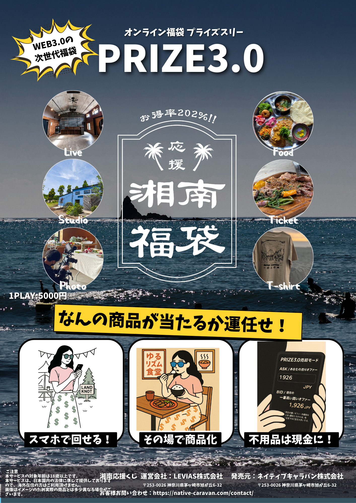 本企画は、“湘南の魅力をもっと面白く届ける”ことを目的に、地域事業者・クリエイター・飲食店と連携して立ち上げたオンラインくじプロジェクトです。